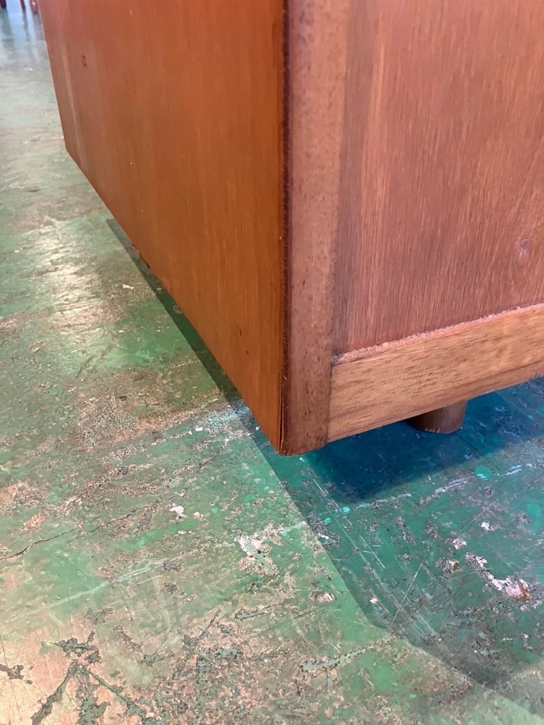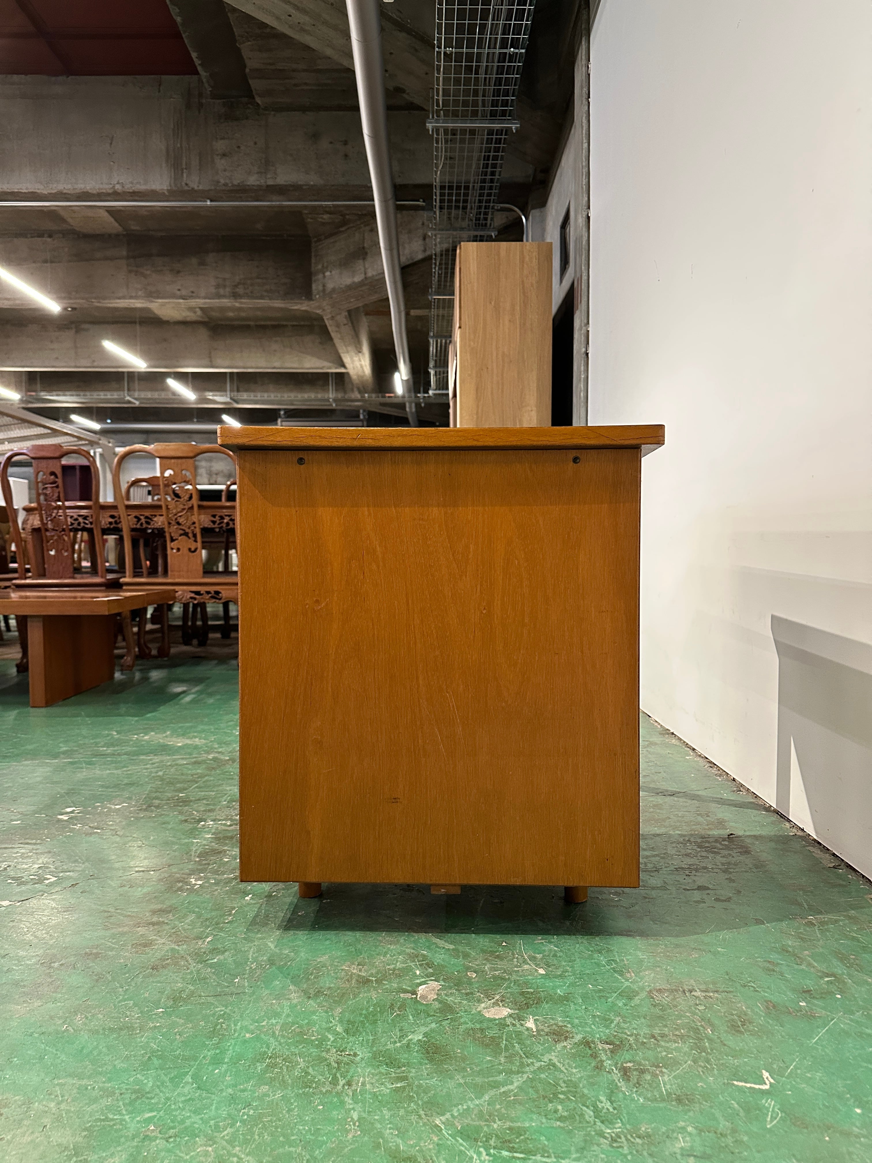 写真からもわかる通り天板が反っており、左側の引き出しが閉まりきりません。