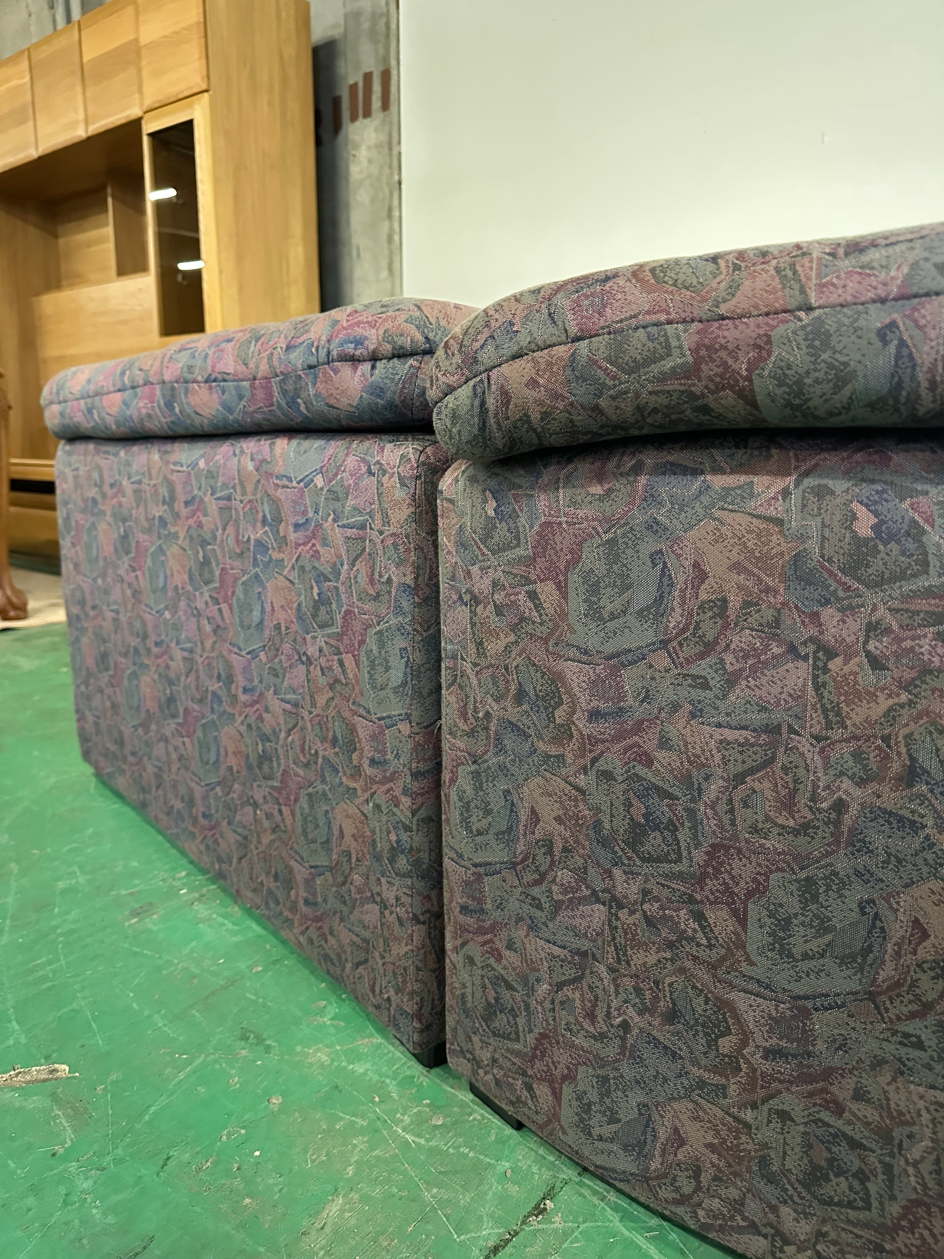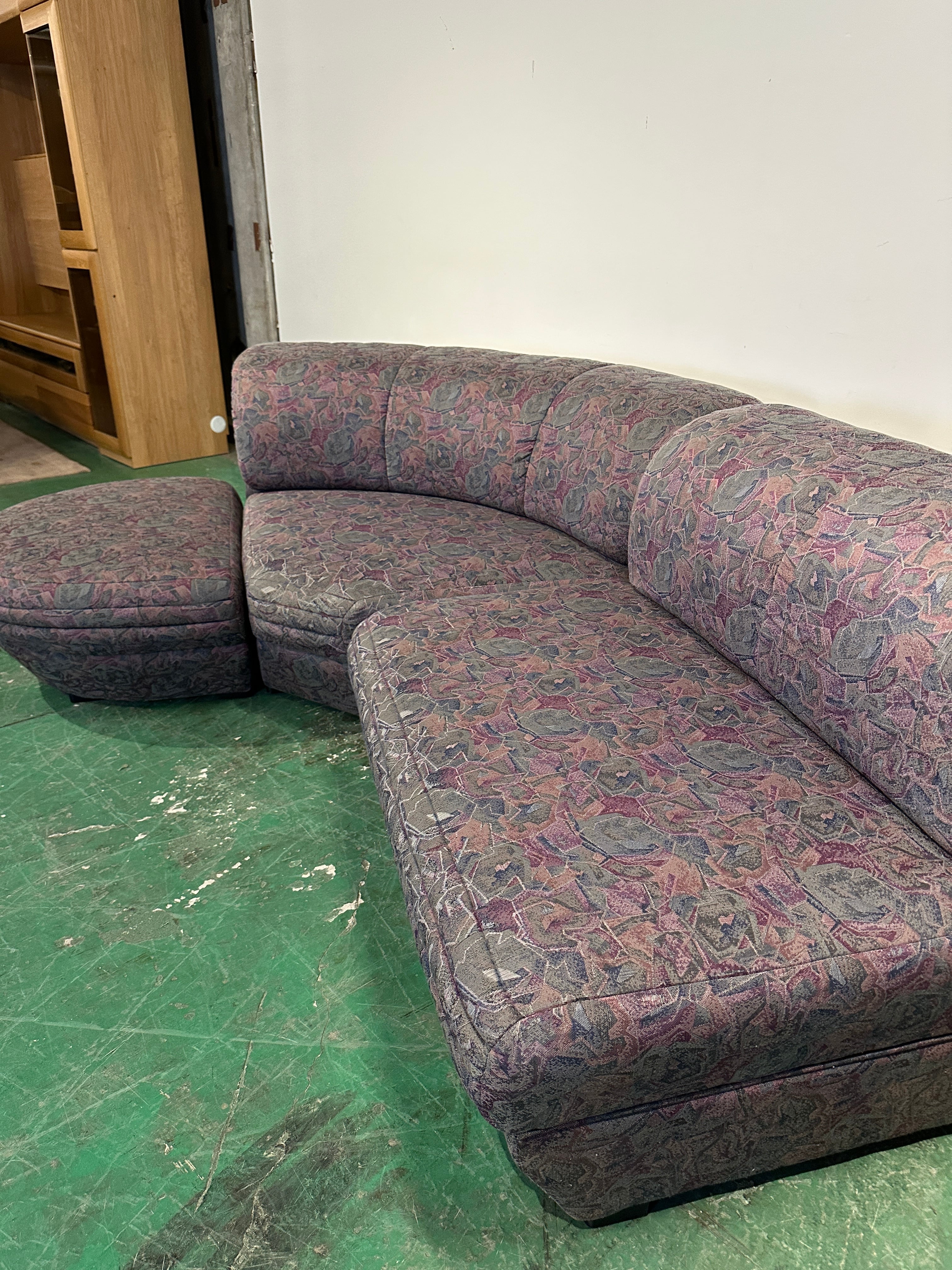 花柄のような幾何学模様のカウチソファ。