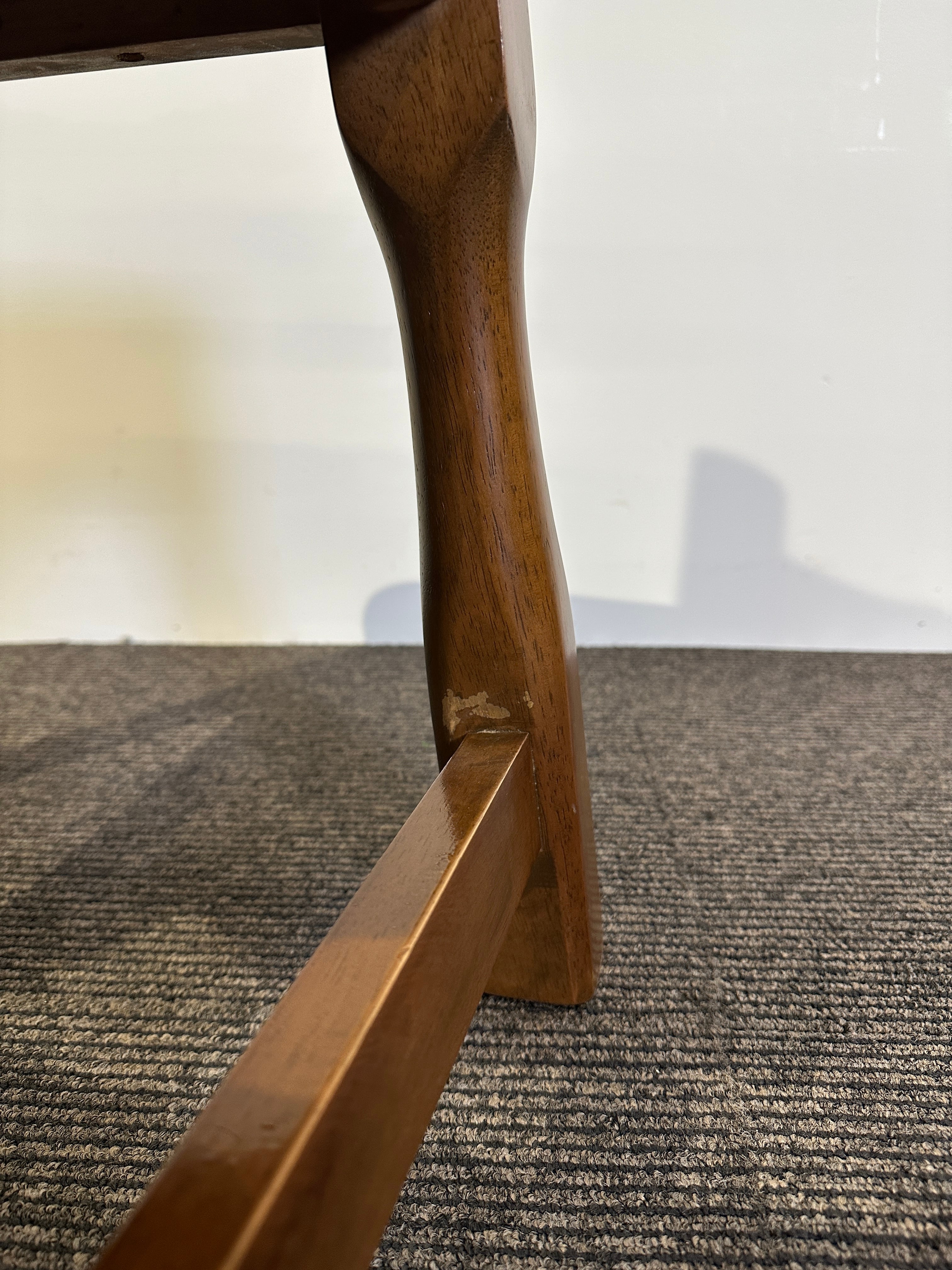 比較的状態の良いフレームに対し、座面の生地とクッションに損傷が見られたため張替を施しています。