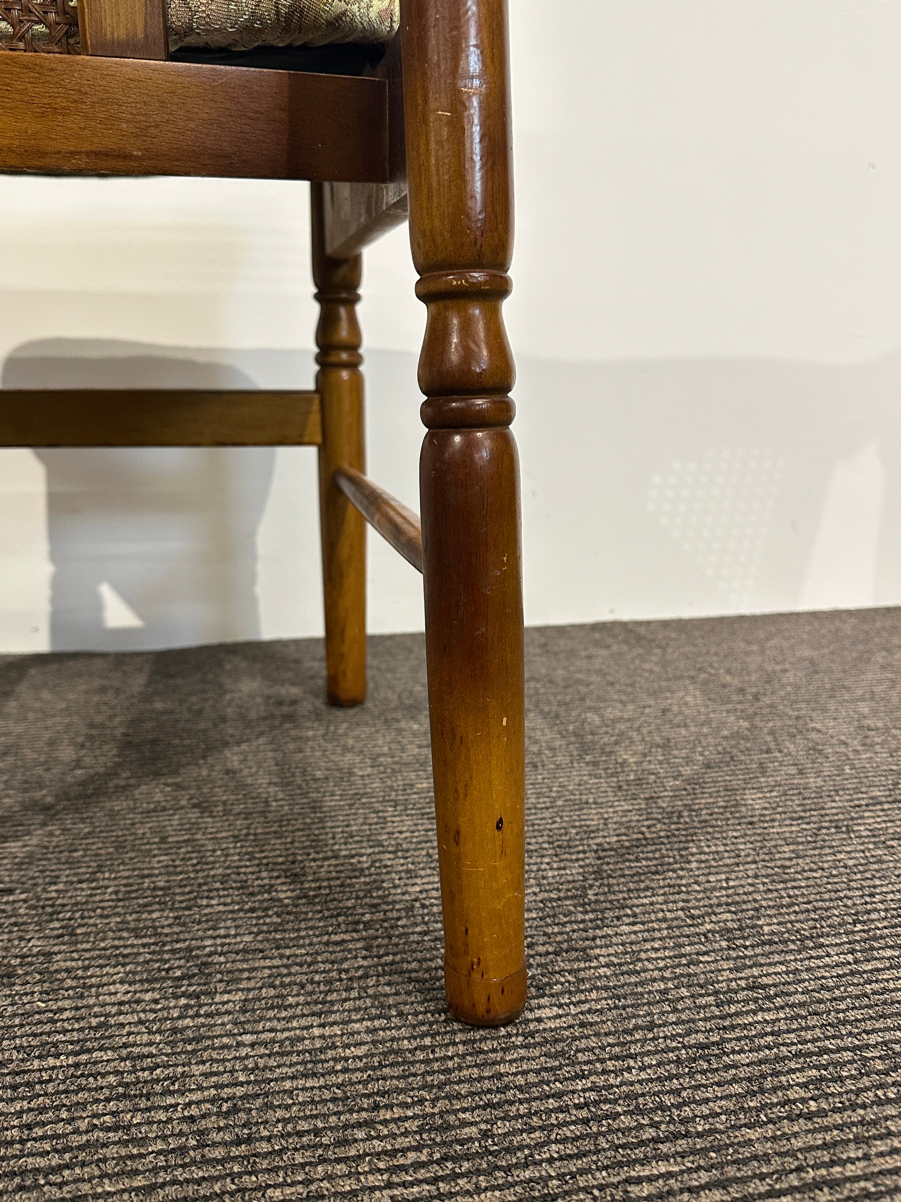 座面の状態が悪かったので、クッション材を交換し、デッドストックの花柄生地で張り替えています。